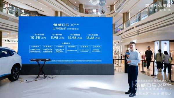 5月25日,“长续航新主流混动SUV”荣威D5X DMH江苏区域上市会在南京举行。新车共推出135畅行版、135豪华版、135旗舰版、135科技版四个版本,正式售价区间为11.98万元-14.68万元。同时,上汽乘用车推出购车限时权益,用户支付1000元订金可膨胀至11000元,直接抵扣车价后,荣威D5X DMH限时权益价10.98万元-13.68万元。
