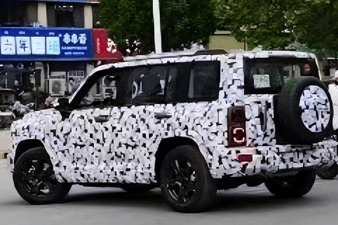 车身侧面,新车的线条勾勒非常丰富,即使是隔着厚厚的伪装层都能呈现出非常强的肌肉感,气场可以说一下就上来。由于这款全新硬派SUV的申报信息保护的特别隐秘,长宽高、轴距完全没有公布。不过通过谍照不难看出,新车整车的车身尺寸和轴距都比较大,而且车身姿态也比较高,通过性和越野性方面的表现值得期待。