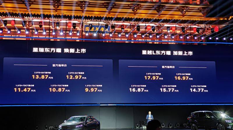10月27日,吉利中国星东方曜双旗舰车型正式上市。其中星瑞东方曜共推出5款车型,售价区间为9.97万-13.87万元。