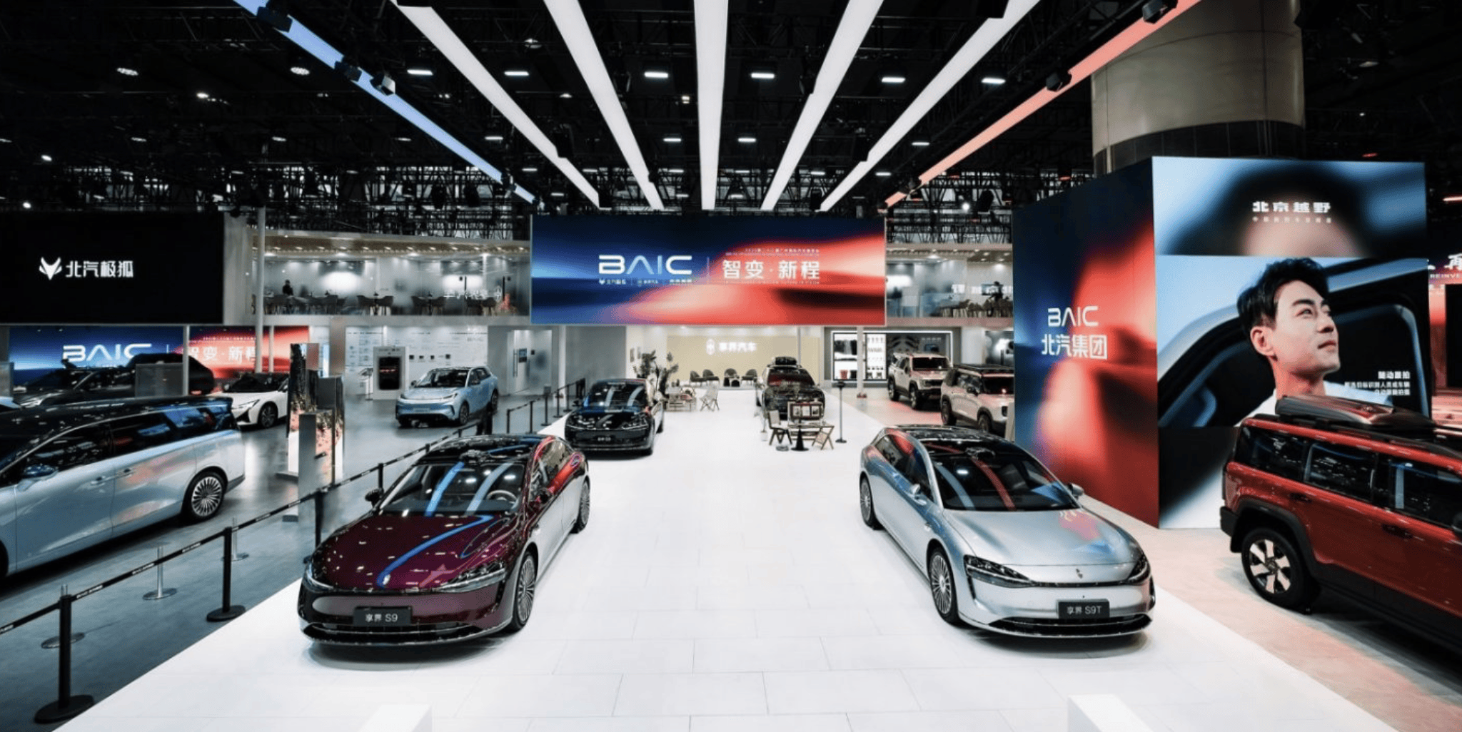 北汽集团展台代表着20多年一线豪华品牌制造经验的沉淀,而鸿蒙智行展台则承载着华为最前沿的智能科技。
