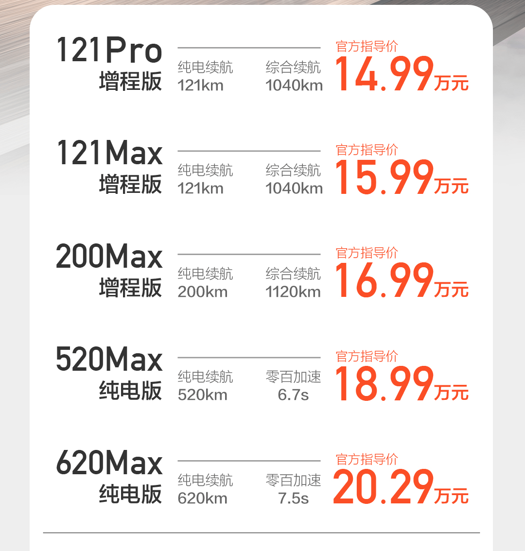 6月25日,深蓝S7正式上市,一共推出了纯电版和增程版两种动力版本的5个车款,增程版售价区间14.99-16.99万元,纯电版售价18.99万元和20.29万元。