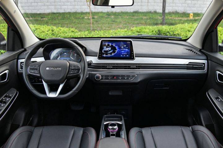 悦虎的内饰设计较为陈旧,车内以平直线条为主,对称式的造型让车内空间看上去更加规整,不过中控台上所配备的小尺寸显示屏幕仿佛瞬间能将你拉回10年以前。这块屏幕的尺寸只有8英寸,内部车机系统的UI界面较为传统,反应速度以及操作流畅度都不甚理想,不过基础的手机互联映射,车联网等功能还是可以实现。主驾驶正前方的三幅式多功能方向盘为塑料材质,实际的手感比较一般,左侧按键用于控制影音,娱乐功能,右侧按键则控制仪表和中控显示屏幕。
