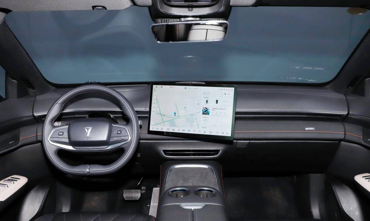 内饰方面,深蓝S7设计非常简约,取消了行车仪表和大部分实体按键,取而代之的是AR-UHD抬头显示和15.6英寸的可触摸式中控液晶屏。除此之外,新车还取消了车内的物理门把手,可以通过电子按键实现开门和关门,但为了防止出现因按键损坏而无法打开车门的情况发生,深蓝S7在门板最下方还保留了一个物理应急拉索。另外,深蓝S7还可以选装12.3英寸的副驾驶娱乐屏,它同样是通过门板上的电子按键控制,在打开它追剧的时候,座椅会自动切换为零重力观影模式。