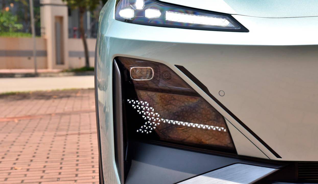 在外观造型上,深蓝S7偏向运动化和智能化,采用了当下主流的贯穿式尾灯、无框车门以及隐藏式门把手的设计。前脸的风格也很符合新能源汽车的设计趋势,狭长的大灯和封闭式进气格栅,整体看起来的未来感十足。在前脸下方的左右两侧,是深蓝S7的智能交互灯组,它由600多颗LED灯珠组成,可以通过车内中控屏自定义各种图案,并随着后期OTA的升级,其细节体验也会更加丰富。另外,在车辆的D柱位置,还配备了可呼吸式的充电显示条。