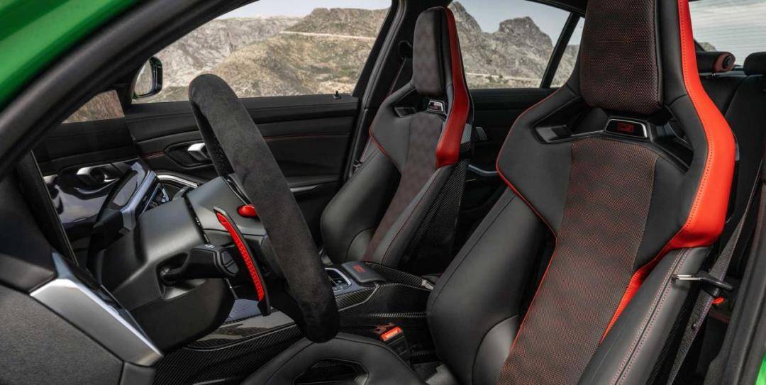 进入全新M3 CS车内,映入眼帘的就是标配的全碳纤维M款桶形座椅,包裹性自然无需质疑,但上下车还得注意“