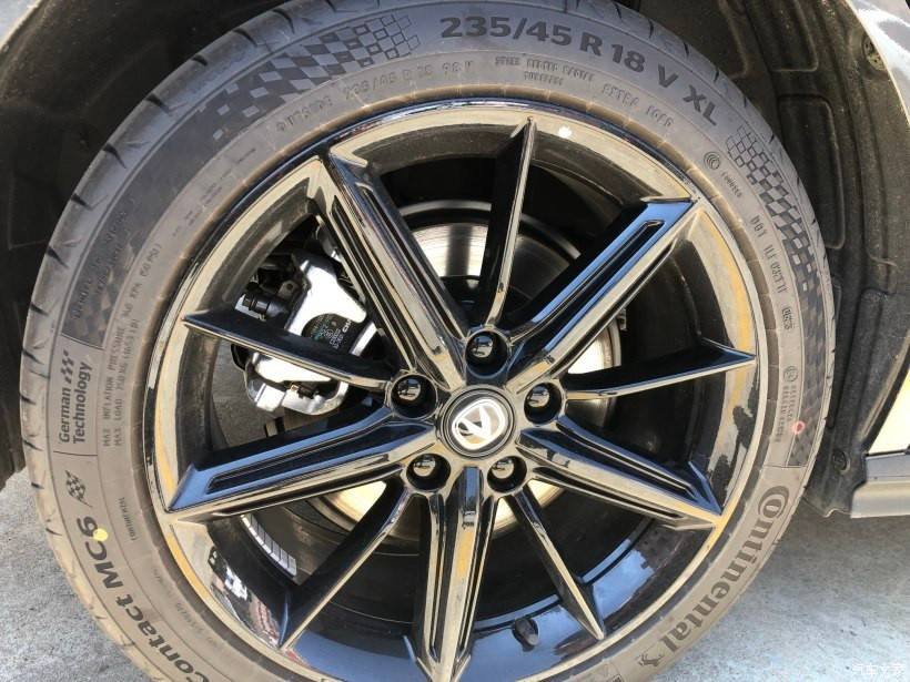 全车配备十八寸熏黑轮毂加持马牌MC6轮胎,规格235/45 R18,性能拉满。四轮独立悬挂,前悬挂麦弗逊式,后悬架是多连杆式,整体稳定性不错,给人满满的驾驶自信。还有这比拳头大的排气,不信你们去试试可不可以塞下一个拳头。