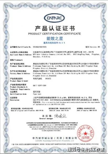 根据产品认证证书来看,比亚迪还能再进一步,最高热效率达46.5%!