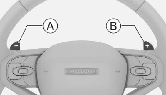 在自动模式(D档)行驶时,可以通过拨动方向盘上的换挡拨片暂时启动手动模式,此时可以通过再次拨动换挡拨片手动升挡或降挡,如果一段时间内没有再次操作换挡拨片,则会返回自动模式。