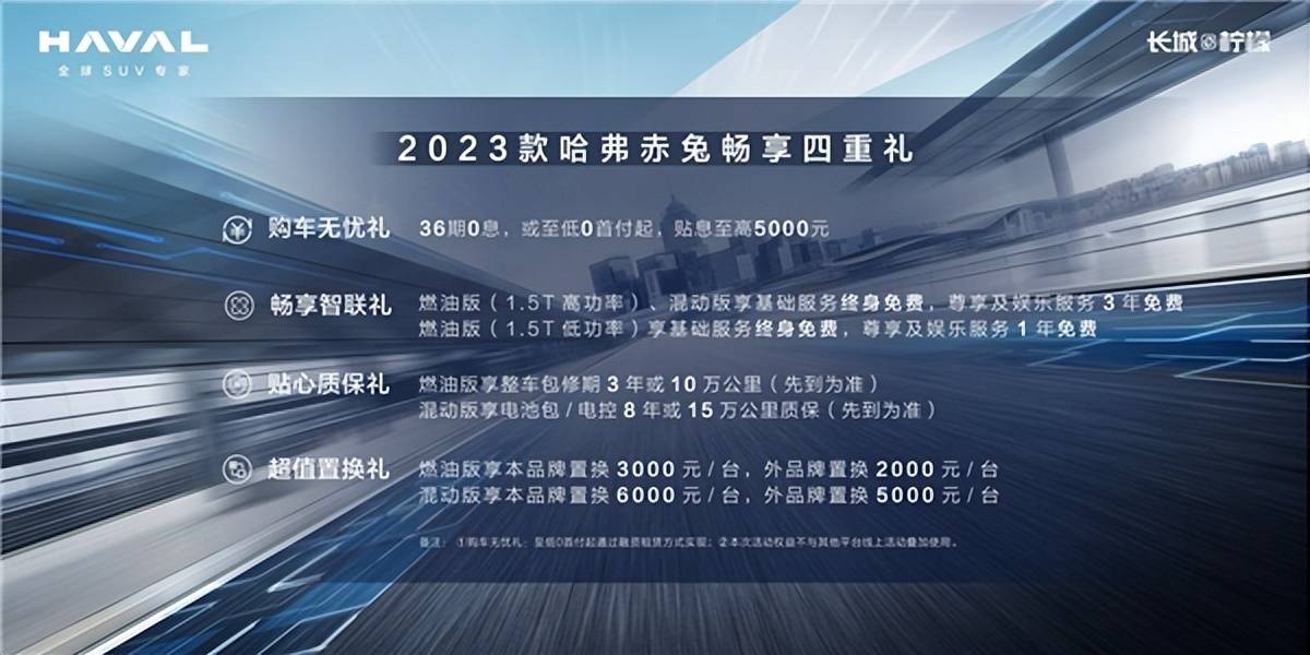 回到开篇提到的问题,年轻人的第一辆车应该怎么选?满足年轻消费者对颜值的挑剔,拥有激情驾控体验及舒适宽敞的空间,2023款哈弗赤兔给出了自己的答案。并且现在选购2023款哈弗赤兔可享受购车无忧礼、畅享智联礼、贴心质保礼、超值置换礼在内的畅享四重礼,更优惠的价格,对于手头预算有限的年轻人来说,真的非常友好。感兴趣的同学,可以到店品鉴试驾。