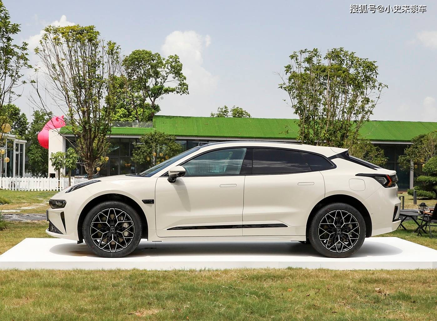 再来看新车的车身侧面部分,新车的车身整体低趴且修长,而且车顶有着明显的下滑式造型来提升新车的运动定位,无框车门的造型也是深得当下年轻消费者的喜爱,车门部分整体贯穿式的隆起腰线很饱满,结合隐藏式的车门把手设计,整体感的表现还是不错的,车门底部还有着突出的线条以及黑色饰条镶嵌装饰,提升了车身整体的层次感。车身尺寸方面,长宽高分别达到了4977×1999×1545,轴距为3005mm,出色的车身表现让新车的外观看起来更霸气,内部空间也是很宽裕,大五座布局乘坐很舒适。