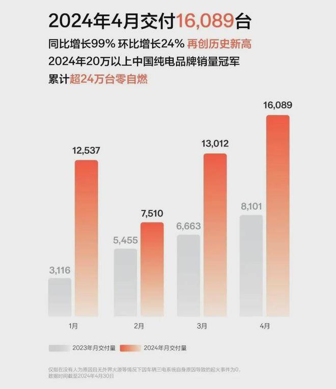 另据悉,极氪汽车今年4月卖了16089台,同比增幅99%,创下历史新高了,此时IPO上市确实是个好时机。今年前4个月,极氪汽车累计卖了近5万台。
