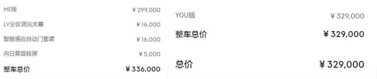 YOU版:32.9万元(较ME版价格增加3万元)