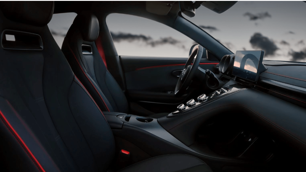 外观方面,新车打破传统轿跑风格,将酷飒元素融入车身,前后大灯内部进行了黑化处理,大溜背设计配合高亮黑亮条修饰车身,提升运动感。