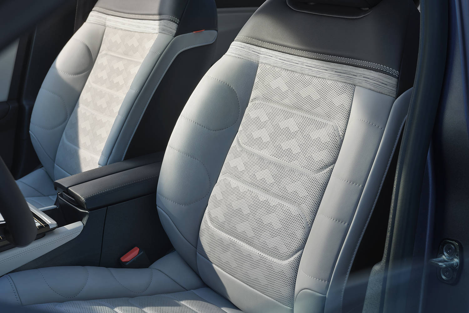 全新的月见灰浅色内饰明亮通透、氛围简约现代。Karuun®浅色木纹门护板和仪表板装饰面板、中央面板流光金丝激光镭雕设计,彰显简约轻松的法式时尚。
