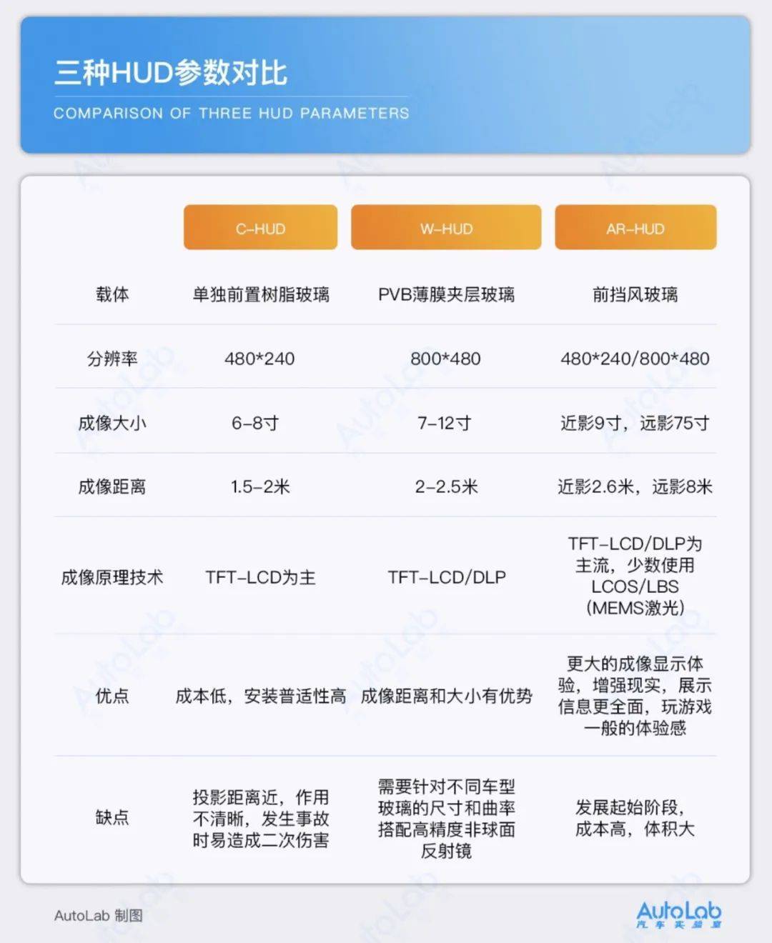 结合表格,我们可以更直观的看到AR-HUD对于另外两种HUD的竞争优势,同时它也能让用户的视线始终保持在正前方,所以AR-HUD已经成为HUD的主要发展趋势。