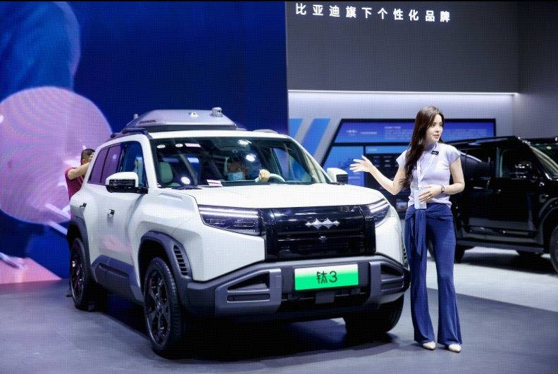 2025年4月30日,第十七届西安国际会展中心,比亚迪旗下个性化品牌方程豹强势登陆西安五一车展,其“钛”系列首款车型——钛3于4月16日全国上市,起售价13.38万元,顶配车型(搭载无人机系统)售价19.38万元。作为方程豹品牌从高端市场向大众化市场拓展的里程碑产品,钛3以“科技潮品”定位切入15万-20万元级紧凑型电动SUV市场,凭借“机甲美学”设计、硬核越野基因与智能化配置,成为车展焦点。