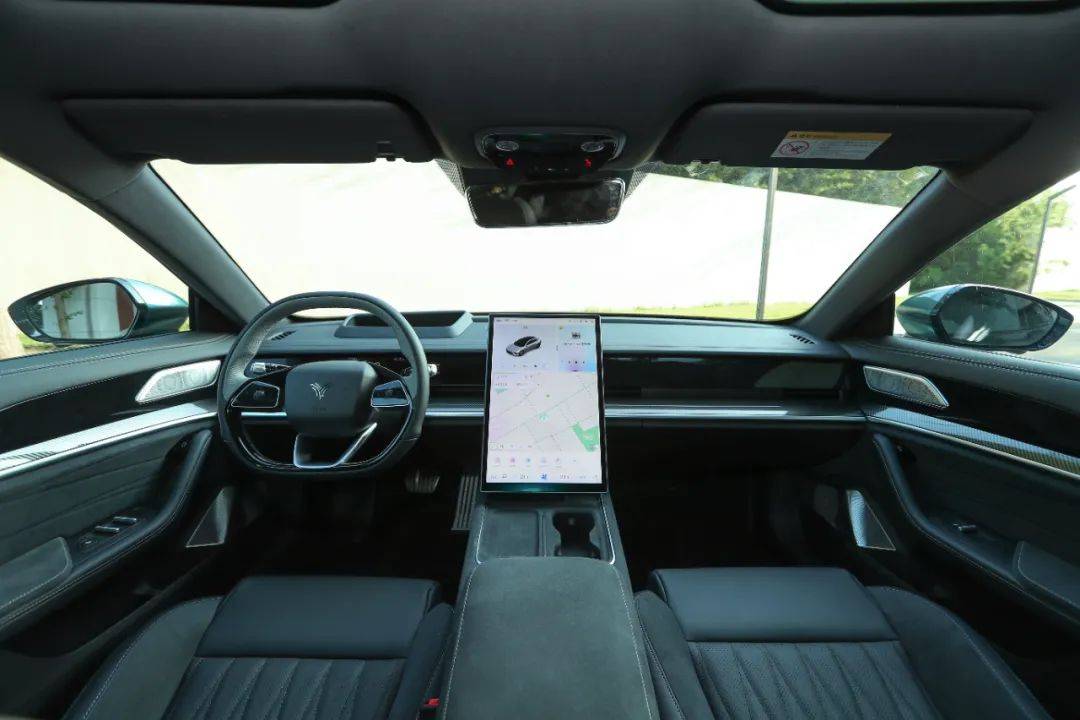 本次试驾的车型为增程版,试驾主要在城市道路进行,当时正值暴雨。不过即使在雨天,也可以感受到起步和加速过程中的动力非常顺畅,当速度提升起来后,车轮与路面的接触也非常稳定,丝毫没感受到打滑现象,并且后段的动力输出也比较平稳。由于当天雨下的很大,没能体验到全景天窗的防晒功能,但在隔绝雨滴敲击车顶方面的隔音表现也还不错。