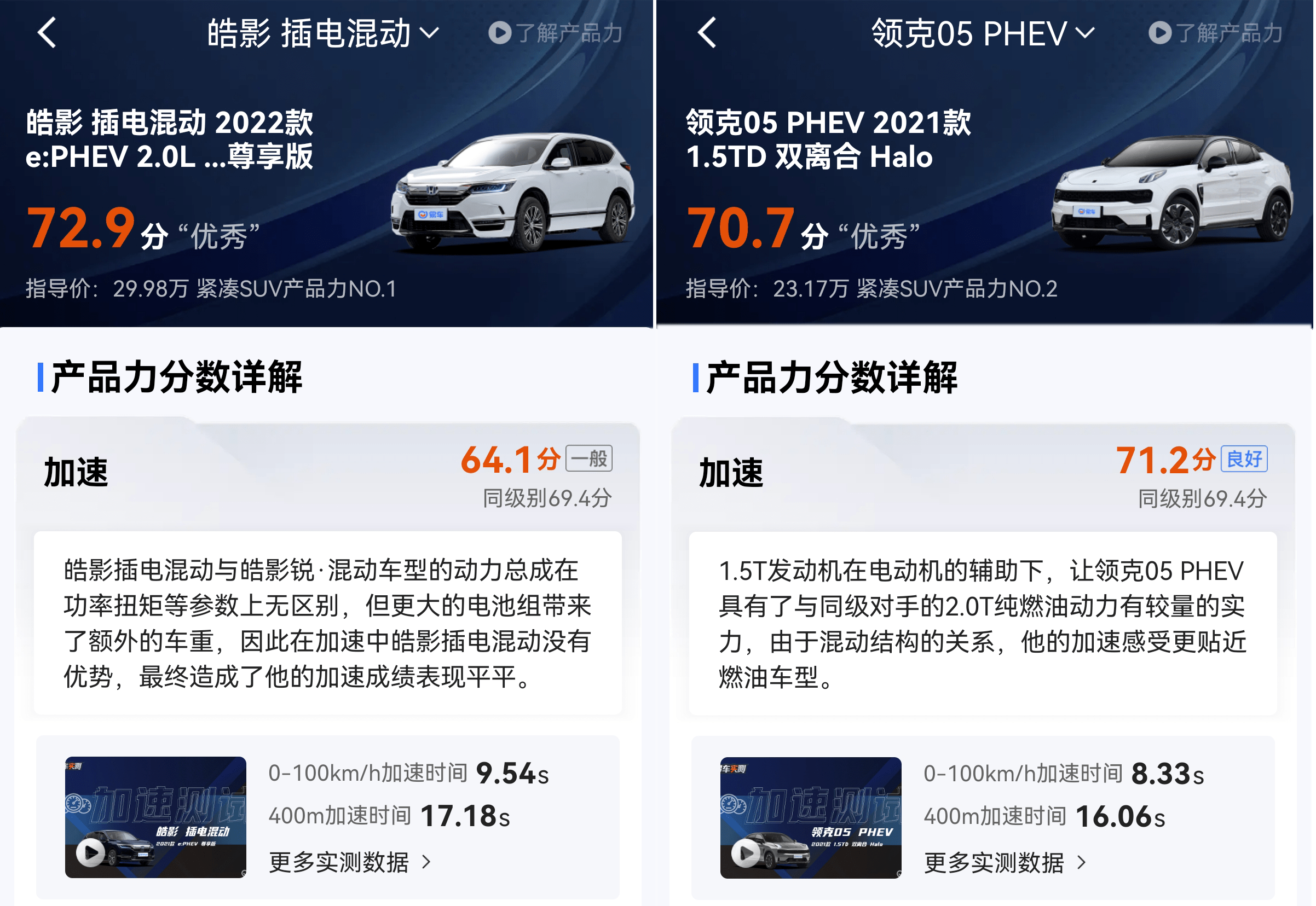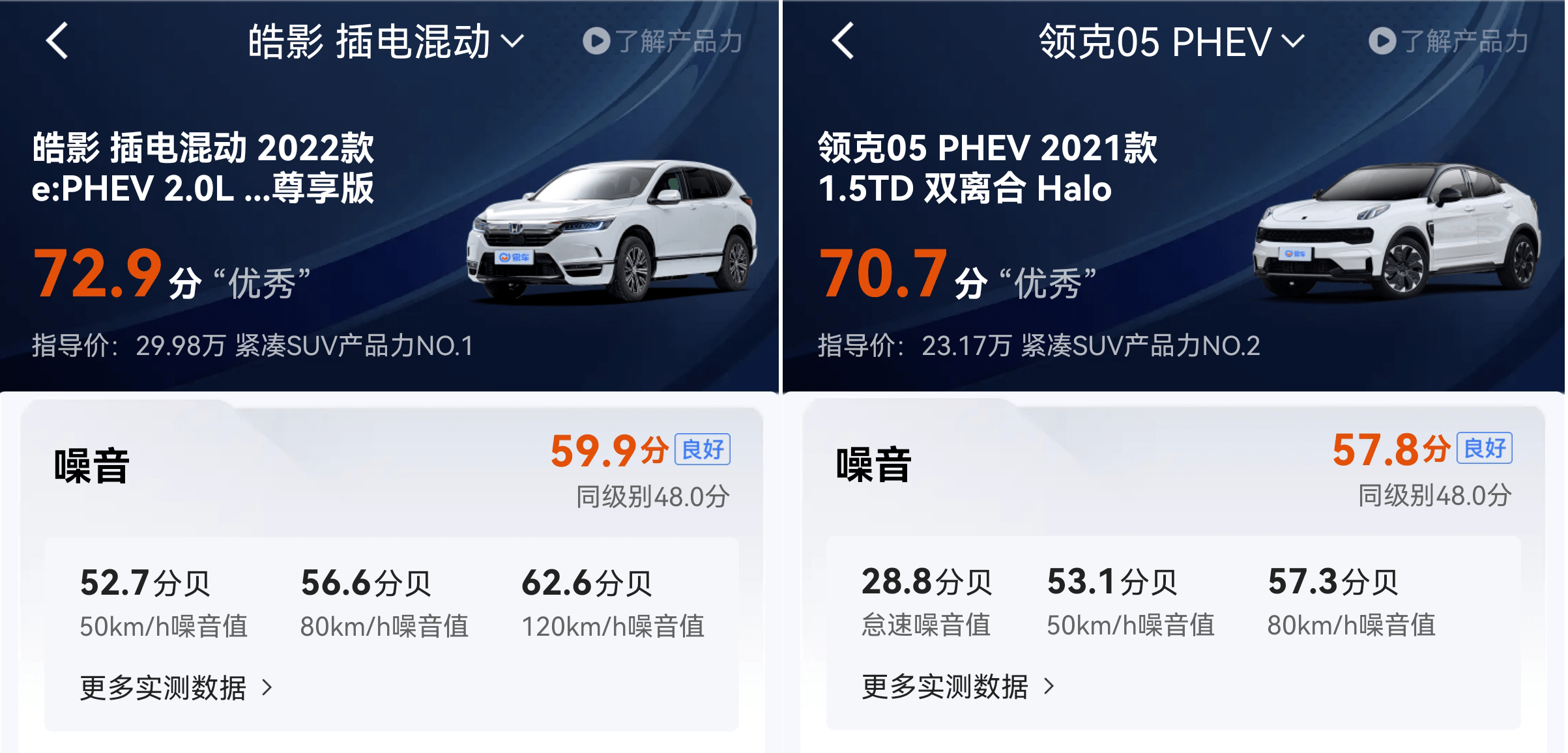 6项产品力实测数据对比,皓影PHEV与领克05 PHEV选谁