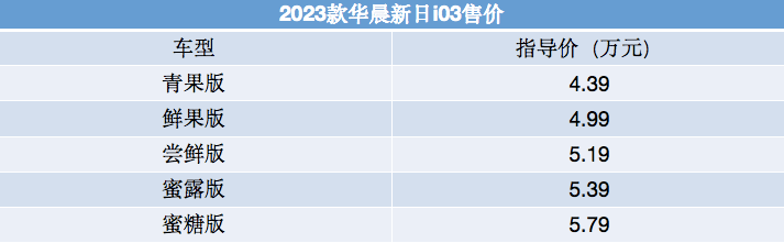 2023款华晨新日i03上市!尺寸和配置调整,售价4.39万元起