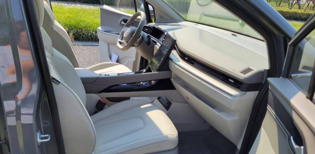 车内用料和配置其实比丰田赛那低配车型更厚道,至少提供了全方位皮革软包材质覆盖,软包用料很舒服,台面上搭载了全液晶仪表盘和大尺寸导航竖屏,再加上按钮换挡装置,整个中控区域显得非常规整。