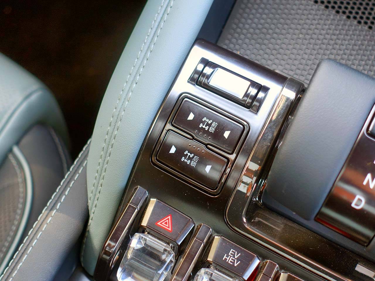 至于四驱方面,它除了前后电机的结构之外,还配有前后的差速器锁止功能,以及四驱低速模式,扭矩输出被放大,让车辆具有更强的通过性。