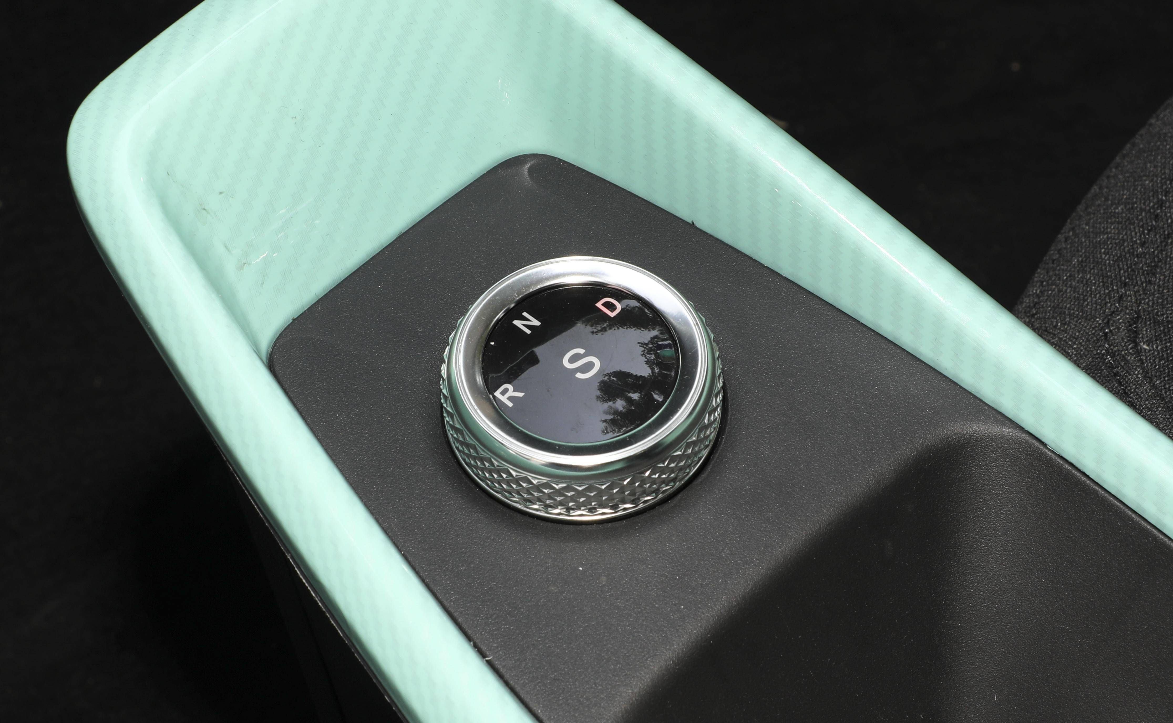 北汽元宝的中央扶手台也采用了主副驾贯通式设计,仅配备了手刹以及旋钮式换挡。
