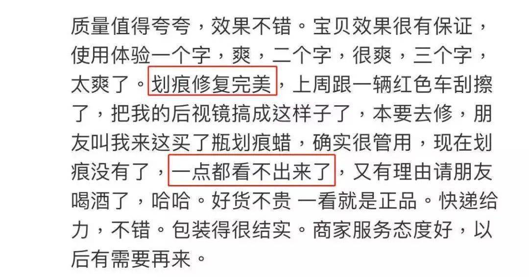 价格亲民,效果好!再加上品质有保障和超高复购率,证明了爱丽新划痕蜡也得到了众多车主们的认可。