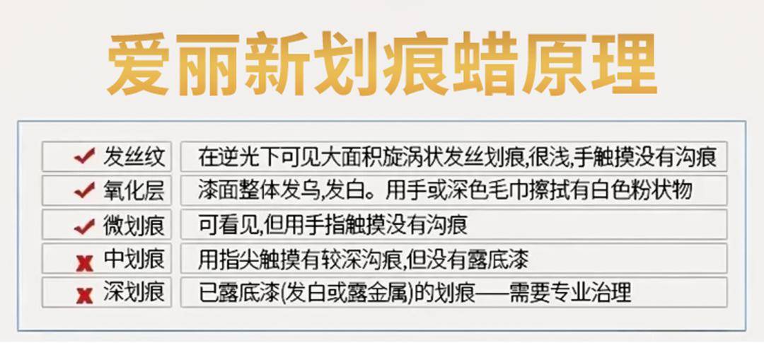 以后如果再看到车漆有刮痕无需犯愁了,不妨试试爱丽新划痕蜡,说不定轻松就搞定了呢?