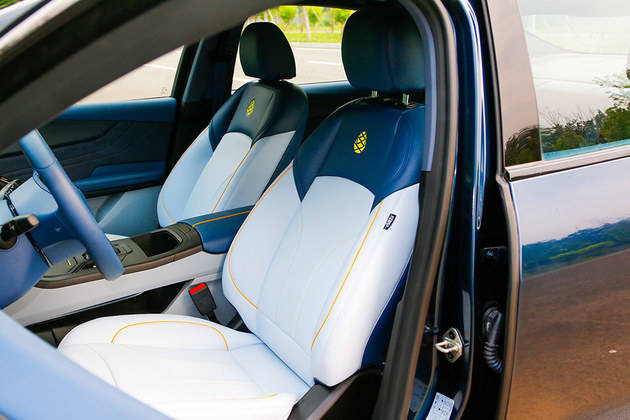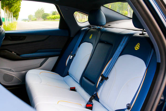 双色拼接的座椅运用了黄色的缝线,靠背处也加入松果刺绣表明身份,同时座椅柔软度和包裹性也都比较不错。笔者身高183cm,进入前排调整好座椅,头部空间约为一拳。保持座椅不变来到后排,头部约为两指,膝部一拳,整体空间表现还是合格的。