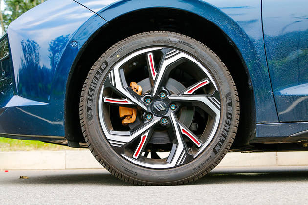 车身侧面来看,羿典藏版采用了大溜背的轿跑造型设计,整体造型十分流线、运动。此外,新车也采用了隐藏式门把手等设计降低风阻。五辐式铝合金轮辋加入了红色元素点缀,同时新车还配备了金色的刹车卡钳,轮胎来自米其林PRIMACY 4,规格为225/45 R18。