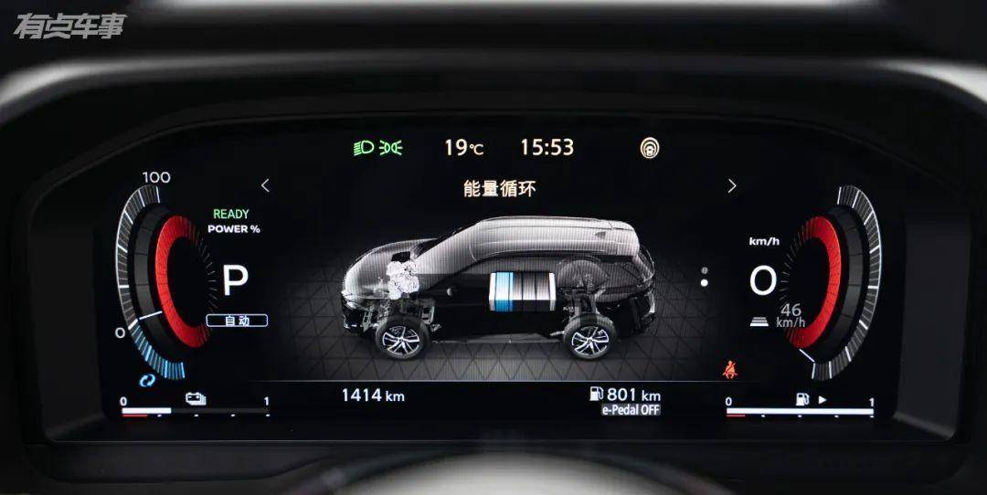 也因为电驱系统的缘故,整车的NVH水平表现更好,对于风噪和路噪的抑制都很到位,不过驾驶者还是能感受到增程器的介入,但对比同级别的混动车型,整体的静音和震动控制都上升了一个台阶,甚至如果乘客不细心留意,几乎难以察觉内燃机运转的声音。此外增程器在急加速等大动力请求的情况下,会先以低转速启动,并缓慢提升到最佳的效能区间,在保证静谧性和平顺性的情况下,又带来了类似燃油车的驾驶体验。