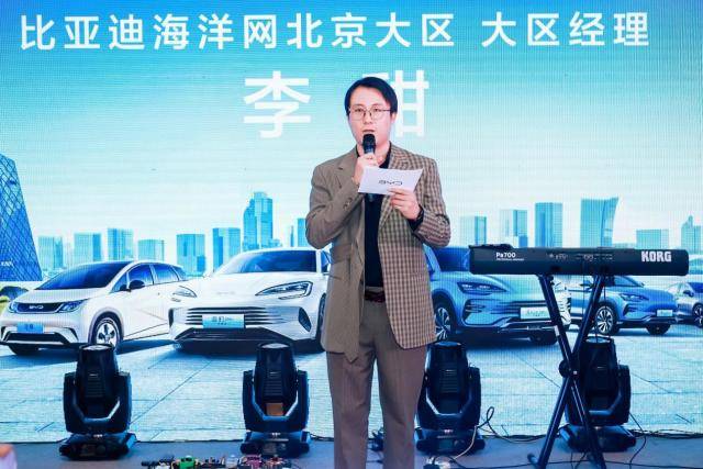 活动中,比亚迪海洋网北京大区大区经理李甜先生登台致辞,与大家分享了海豹DM-i荣耀版、驱逐舰05荣耀版、海鸥荣耀版、宋PLUS荣耀版系列以及海豚荣耀版车型对比亚迪品牌战略所产生的重要意义,并向大家分享了比亚迪在新能源汽车领域的美好展望和傲人成绩。