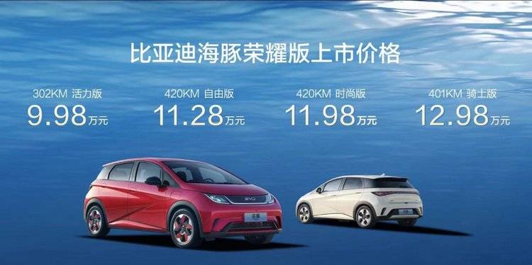 被称为“纯电新物种”的比亚迪海豚荣耀版正式上市,官方指导价格为9.98万元-12.98万元。海豚荣耀版增配减价,通过1项性能提升、3项设计进阶、6项配置升级和新增302KM活力版,实现综合实力的全维进阶,全面满足用户的出行需求。