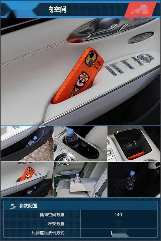 储物空间方面,储物槽数量与布局合理,前排纵置的储物槽内置无线充电功能,并且带有指示灯,查看手机充电状态很直观。