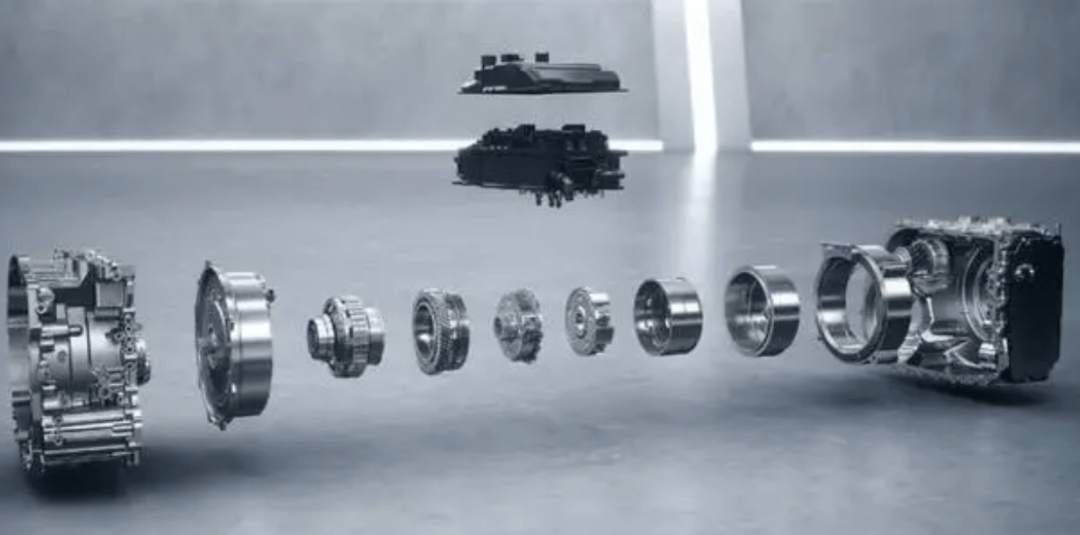 从结构上看,整个3挡混动电驱DHT Pro变速箱由一个发电机电机、一个驱动电机、两个电机控制器和3挡变速增扭机构组成。
