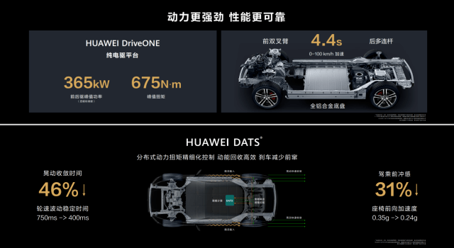 而车辆配备的百万豪车级的全铝合金底盘,重量上比传统钢制底盘轻了30%,韧性强,侧倾梯度小,哪怕是冬天需要走弯道,轻量化的底盘表现减少了因为重量大刹车距离长的问题,很好地保持车身稳定性。再配合HUAWEI DATS的扭矩控制能力,各种弯道都能大胆过。