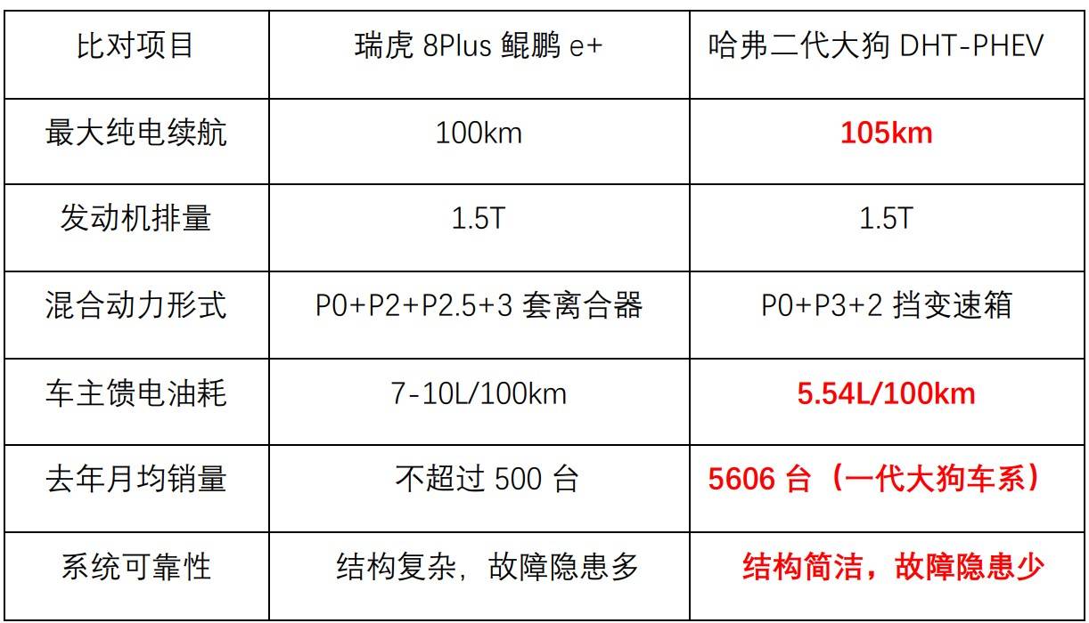 说实话奇瑞是一个讲技术的品牌。但肉眼可见在新能源时代奇瑞似乎没有燃油机时代那么辉煌。鲲鹏e+目前存在着换挡顿挫、EV受限、馈电油耗高等技术问题,新的火星平台超级混动也还在路上。相比之下,二代大狗PHEV版所用的柠檬平台却更加成熟。未来两车间在油耗、馈电表现、通过性、可靠性方面肯定会有对比。还是那句话——拭目以待。