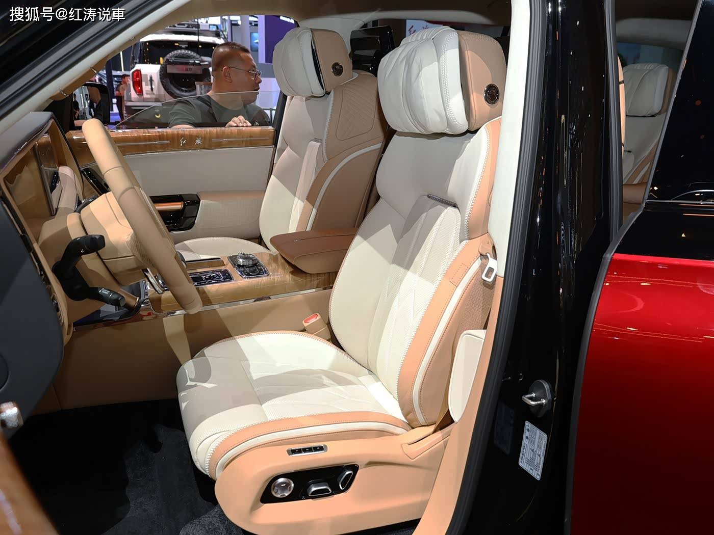 内饰方面,2026款红旗国耀可选榛栗棕/黑和亚麻米/柔光棕两款双色搭配,车内用料十分考究,应用大量的头层真皮覆盖和实木饰板等,还有麂皮顶篷、簇绒地毯进一步提升高级感,新车在配置方面调整相对明显,相比老款增加远近光自动切换、外后视镜片集成盲区探测报警灯、高级巡航、自动紧急刹车和防污染传感器。