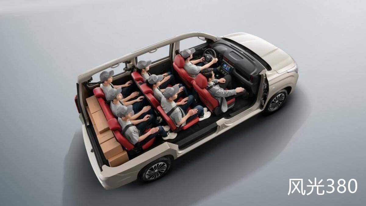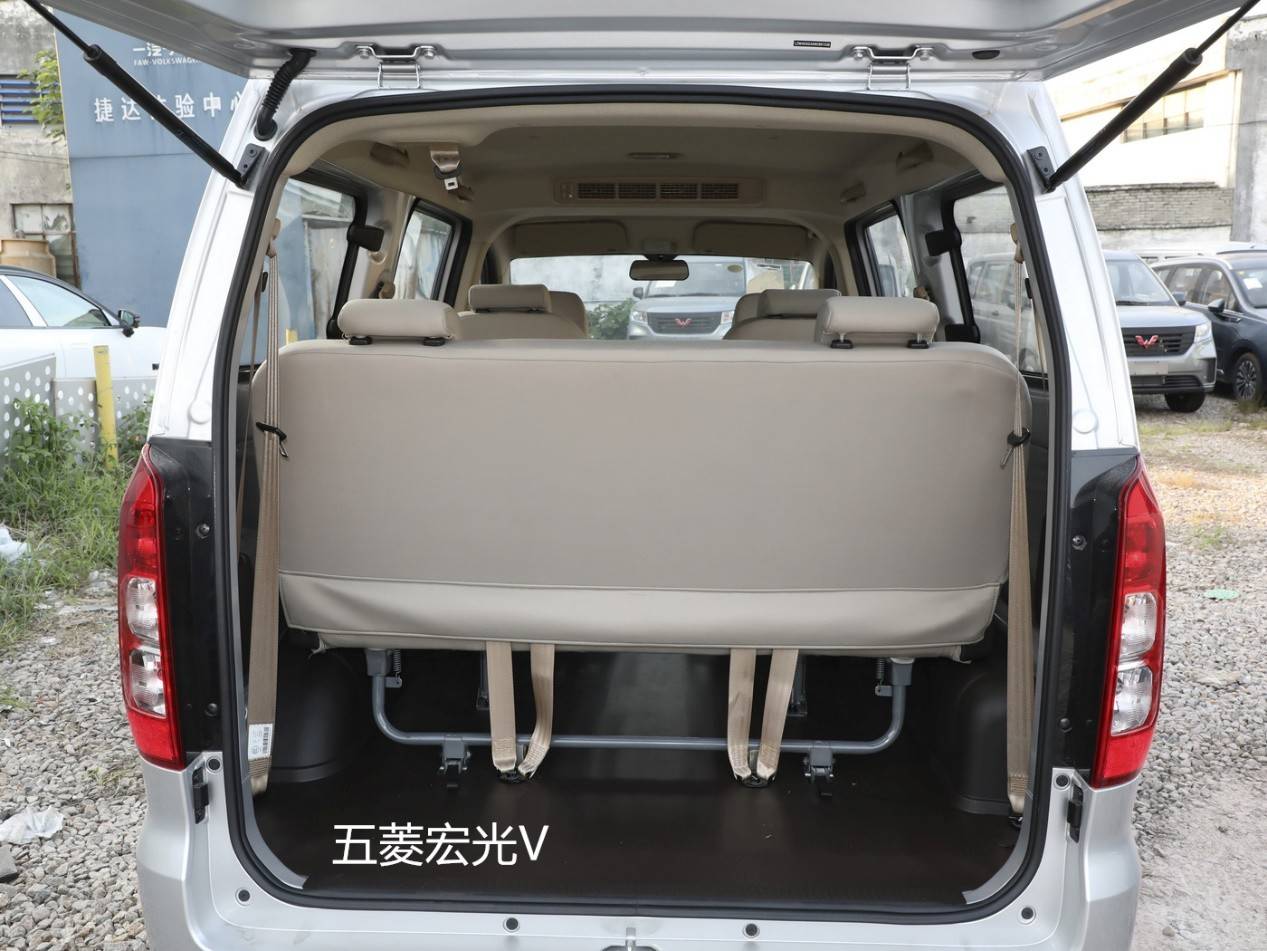而且,因为风光380的空间更大,它的内部最大可以拓展至5m³,内部坐满8个人的情况下还能再带10个20寸的行李箱,而五菱宏光V显然差的远。