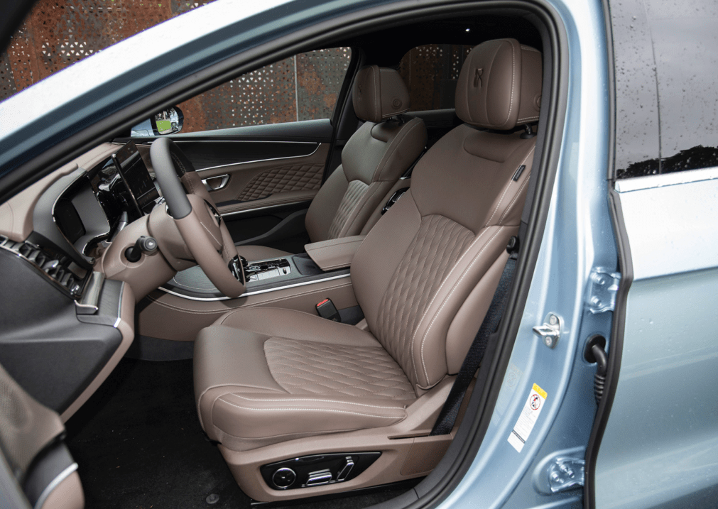 新款汉DM-i冠军版外观大体与老款相近,只是新增了冰川蓝车身颜色,漆面内含亮闪闪的铝粉。座舱方面,有了新的咖啡色与黑色双拼色,装饰面板使用了钢琴烤漆与木纹面板。科技配置方面,汉DM-i冠军版新增了盲区监测,同时支持苹果iPhone NFC手机钥匙。此外,W-HUD抬头显尺寸更大,显示内容更丰富。