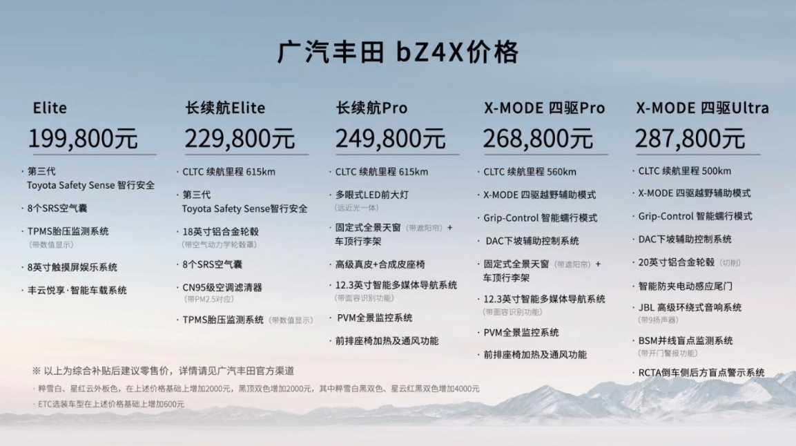 开启e-TNGA纯电新体验,广汽丰田bZ4X正式上市,19.98万元起~