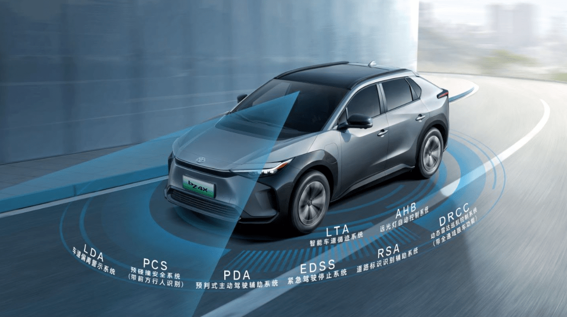 作为一款面向未来出行体验的纯电车型,bZ4X将诸多最新的智能科技和安全技术融入了产品设计。新车配备了4个PVM摄像头和12个超声波雷达;搭载丰田最新一代“TSS 3.0智行安全系统”;装备了晒晒太阳就“来电”的高效太阳能充电穹顶,一天发电量可供智能手机充电约159次,一年发电量可供车辆行驶约1750km*;支持“数字钥匙”功能,通过智能手机无缝实现远程上锁、落锁、启动发动机等便捷操作;还有特别适用于新手驾驶员的“智能泊车助手”,尤其在狭窄路况下可通过手机APP将bZ4X遥控泊入车位。除此之外,还有更多令人怦然心动的前瞻理念与实用设计,让其成为与家人朋友相处的美好空间。