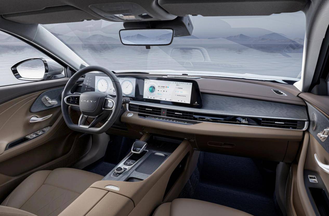 内饰部分,提供悬浮式液晶仪表盘和悬浮式液晶中控屏,其中,全液晶仪表盘搭载指针转表样式的仪表界面,例如时速、转速等车辆信息的显示效果,将呈现机械氛围和科幻氛围糅合融合的状态,同时据悉艾瑞泽8 GT将提供高通骁龙8155芯片和LINO5.0系统。