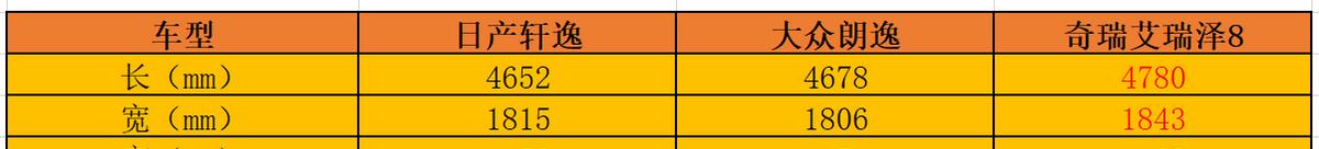 车辆尺寸大的好处还在于空间更宽敞,而从图中我们可以看到,奇瑞艾瑞泽8的最大轴距已经非常接近B级车的2米8了,反观轩逸、朗逸则是一个轴距刚过2米7,一个轴距还不足2米7。因此,奇瑞艾瑞泽8实际乘坐起来是要比轩逸、朗逸宽敞不少的。具体宽敞多少呢?如果夸张一点来说,那就是大平层和小套三的区别,如果严谨点来说,则是一个能让成年人坐得舒适与自由,而另外两个只是能让成年人坐得下。