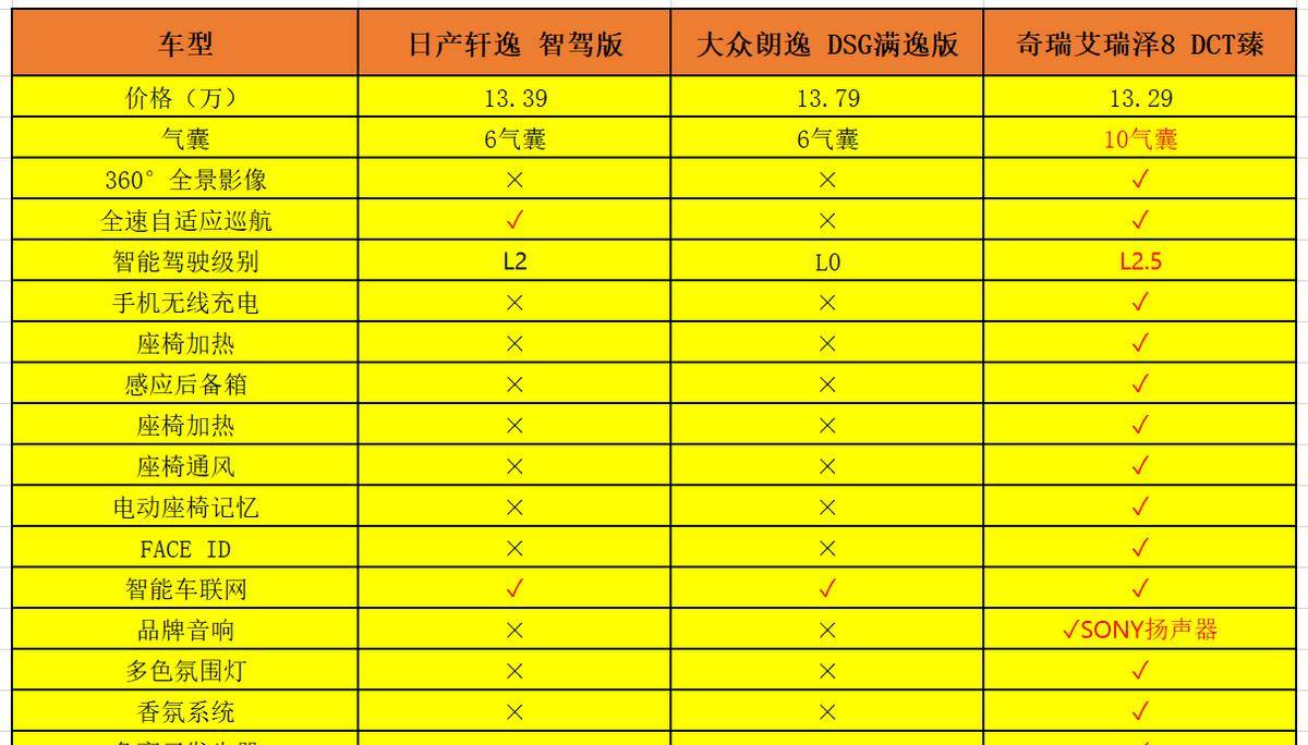 如果是我的话,肯定会毫不犹豫地选择国产车,至于原因也很简单,抛开合资品牌身份,它们本就是更好的选择,个别车型更是产品实力越级,且现在国产品牌口碑也不差。拿奇瑞的艾瑞泽8来说,它在产品综合素质上就全面领先了大众朗逸、日产轩逸这些老牌的合资家轿,关键,领先的幅度还不小。具体来看: