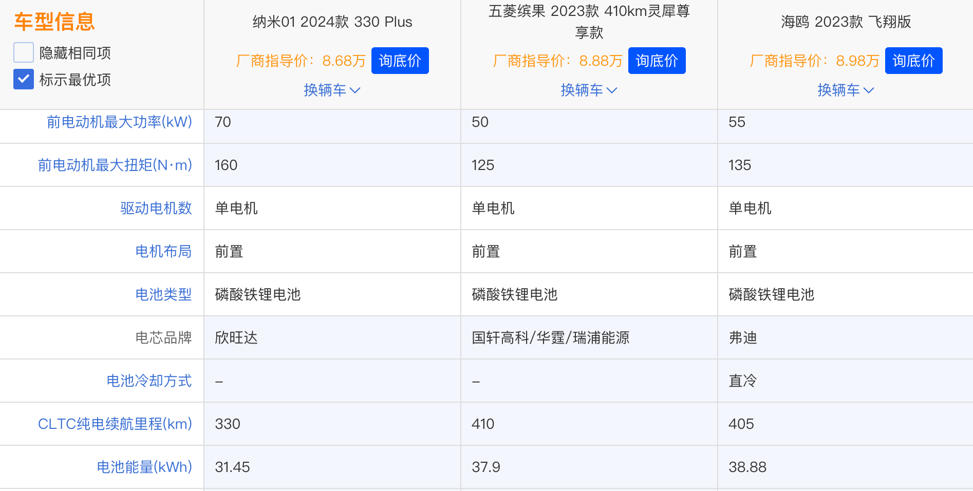 它同台竞技的对手不少,比亚迪的海鸥、还有五菱的缤果算是细分市场里的头部。相比他们,纳米01的价格优势不算明显,即使加上置换礼和上市福利也在7万左右,相比不到6万的五菱的缤果;配置和内饰做工相当在线的海鸥,纳米01不论是低价车的门槛还是高配车的配置都落在下风,但纳米01另有“杀手锏”。