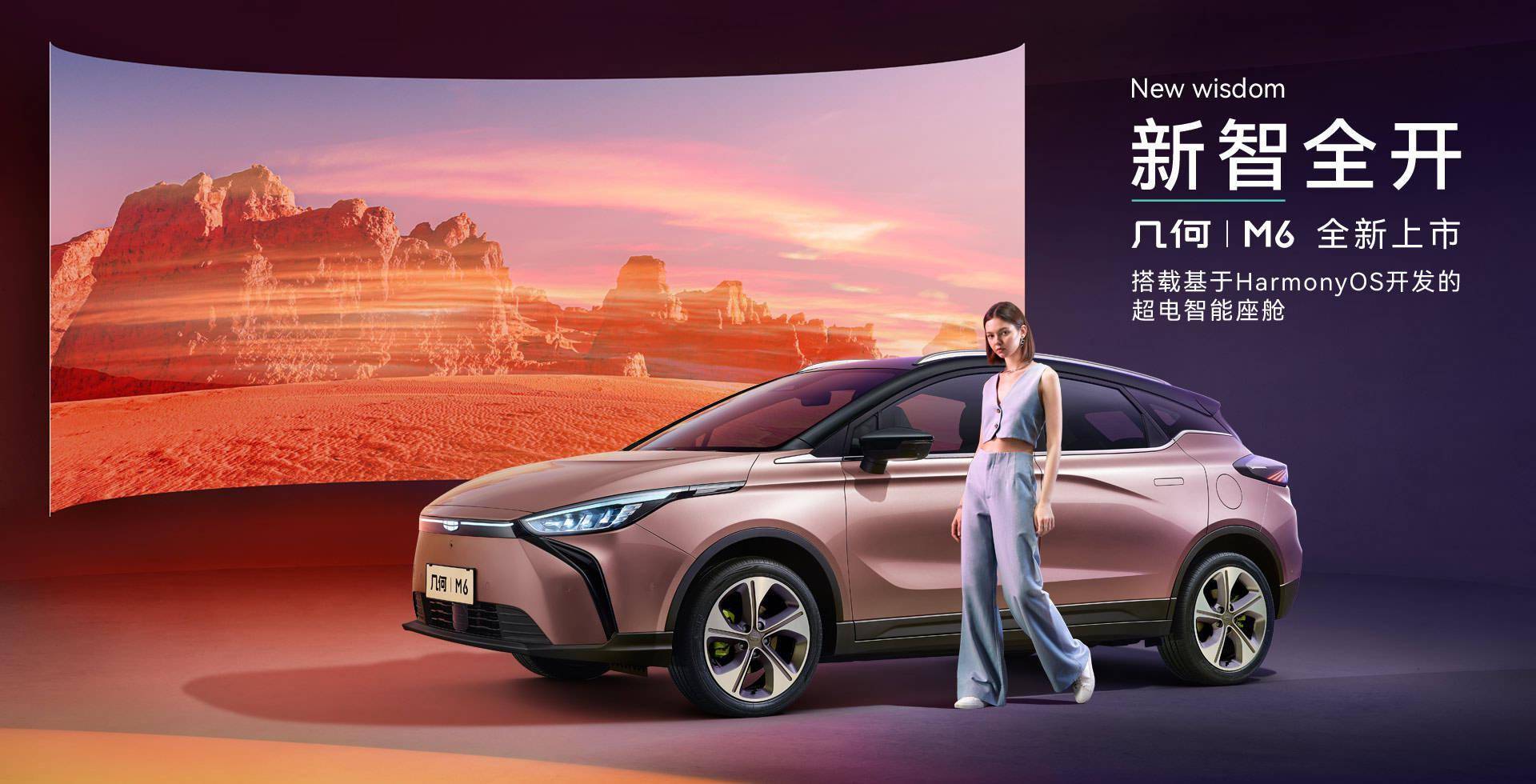 吉利纯电品牌几何旗下 G6/M6 正式上市,两车各推出 4 款车型,综合补贴后售价均为 14.98 万元-18.68 万元。何 G6/M6 全系标配基于 HarmonyOS 开发的几何数智座舱、L2 级智驾辅助系统和 10.2 英寸液晶仪表+14.6 英寸中控大屏等。依托于华为车机模组和 8G+128G 的高规格存储组合,两车均可实现车机 app 一触即开、秒速运行,入门即高配。