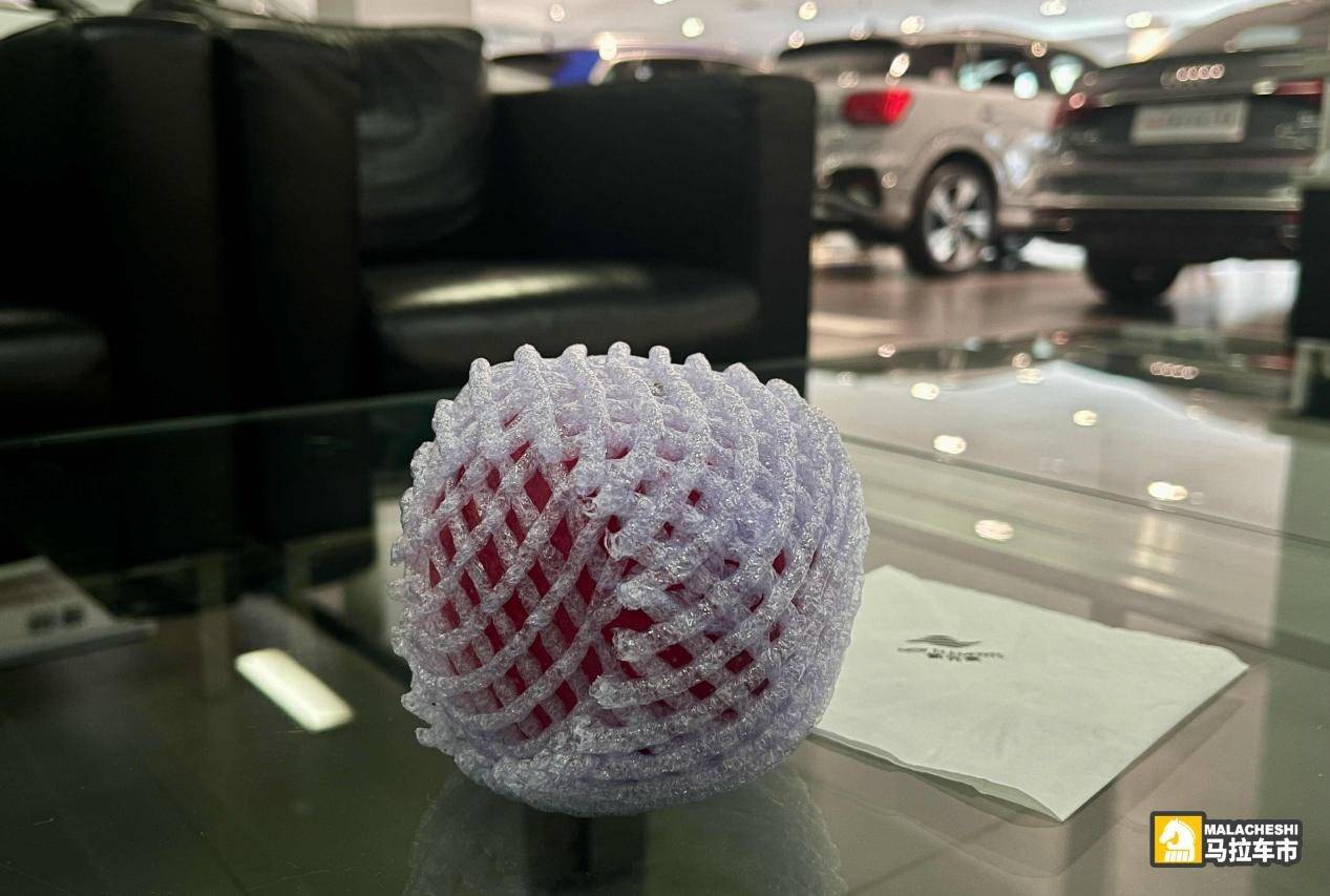 此外,在马拉车市探访二手车市过程中,刚好还遇到了这样一件事。某位甘肃的用户在新元素奥迪二手车中心购买了一辆二手的奥迪Q5,为了感激销售人员的热情接待,以及店内提供的诸多优质服务,专门从甘肃老家寄来了两箱当地产的苹果。