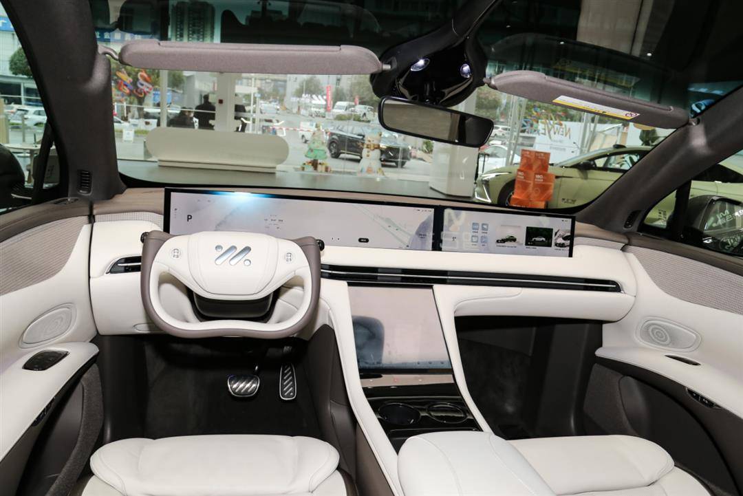 车内风格依旧是与时俱进,中控台上有一排屏幕,液晶仪表和中控大屏集成在一块大屏内,可供副驾驶娱乐的屏幕尺寸也做得相当给力,值得一提的是窄边框的设计显得屏幕看起来很爽,据悉屏幕还支持升降。空调控制区域也是利用一块大尺寸的液晶屏代替,这样一来,前排中控台区域就见不到任何的物理按键了。“半辐方向盘”已经在其它品牌的车型上逐渐量产使用,这个设计对转向比的设计要求比较高,但相信屏幕前的各位肯定看了以后都会觉得不适应。