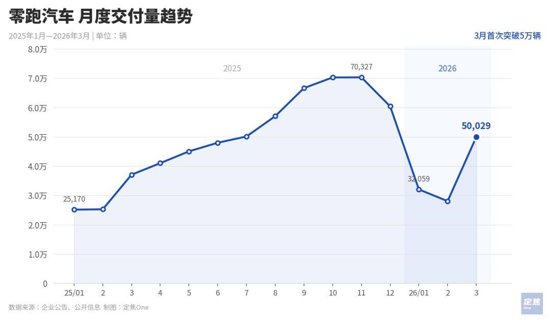 2026年初,新能源汽车购置税政策恢复至5%征收,以及以旧换新补贴方式调整,两项政策叠加,对15万元以下价格敏感市场,造成了一定的压力。零跑管理层在此前财报会上明确表示,1-2月被抑制的需求将在后续释放。从3月的表现看,这个判断部分得到了验证。